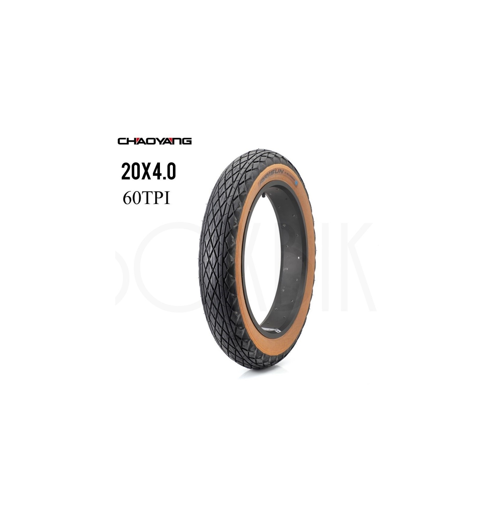 Kvalitets gatedäck från Chaoyang för fatbikes med 20x4 tums hjul. Däcket är ETRTO 100-406 och TPI 60. En bred slitbana design och bruna däcksidor som ger en djärvare visuell effekt. Sand Storm har ett symmetriskt mönster för överlägsen körstabilitet och effektiv vattendränering. Block på däckkanterna för minskad krängning och bättre grepp i svängar. Sand Storm-däcket passar de som kör mest på asfalt eftersom det ger en mjukare gång jämfört med Kenda Krusade Sport-däck som ofta används som standard på fatbikes.