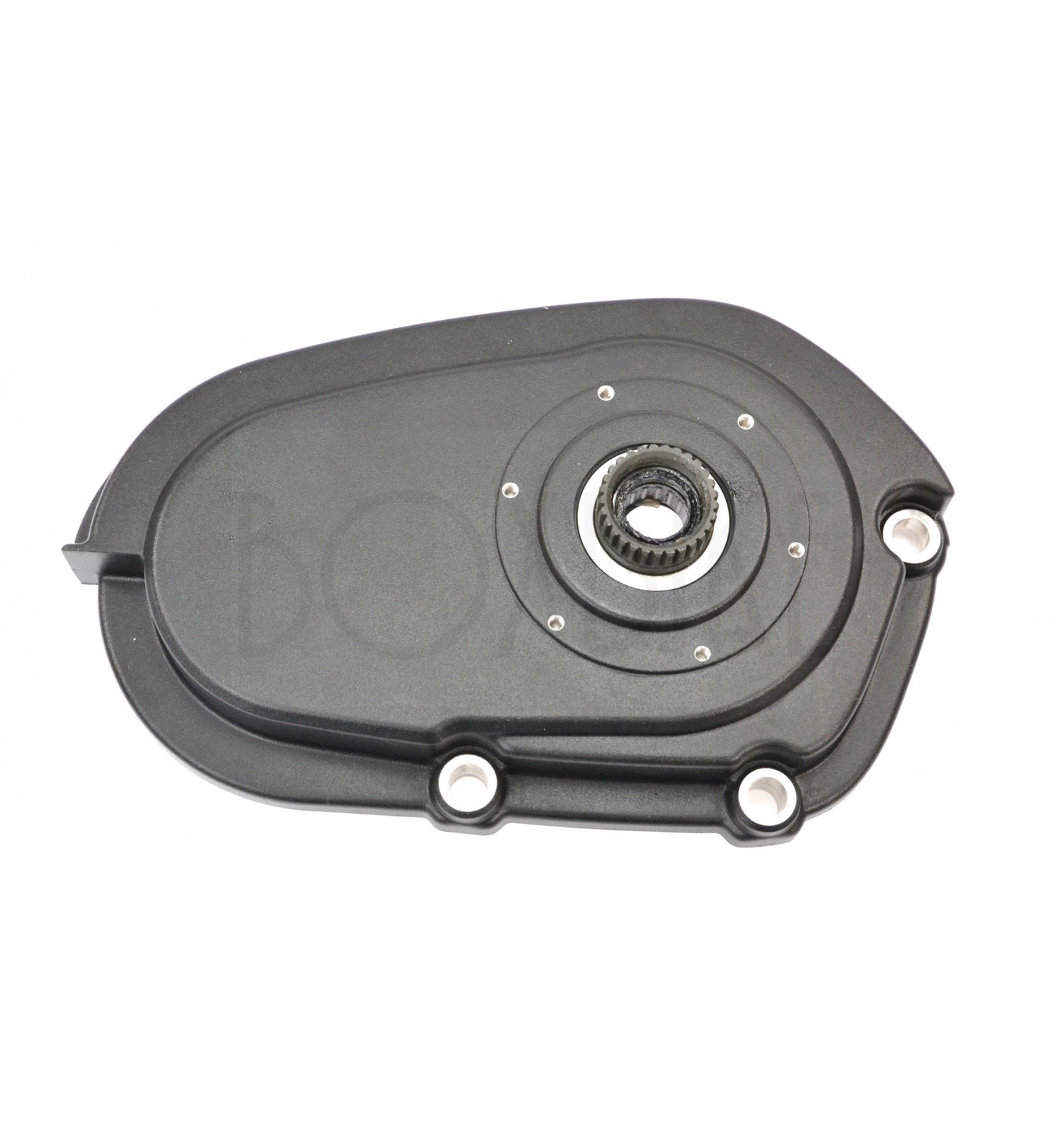 Kåpan är original och används vid renovering av motor eller till exempel vid byte av momentsensorn eller nylonhjul med axel. Motorkåpan innehåller även lager och det stora motor kugghjul som visat på bilden. Motorkåpan passar M400 med fotbroms (CB).