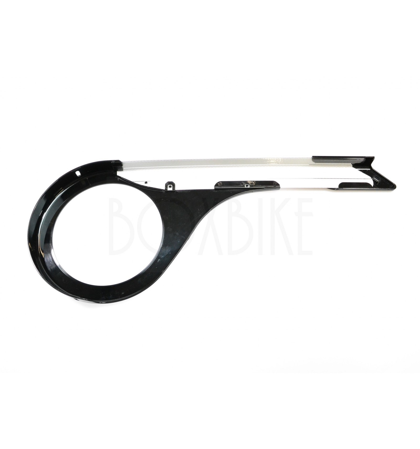 Glanssvart kedjeskydd av PVC-plast för STD plus4. Skärmen är justerbar i längd och passar i generellt sett cyklar med 38T till 52T kedjehjul.